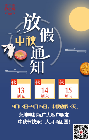 The Mid Autumn Festival holiday is from September 13 to September 15, 2019, and it starts normally on September 16. Please forgive me for any inconvenience to our customers during the holiday. Foshan Yongkun precision electromechanical Co., Ltd. wishes you a happy holiday and a happy family reunion.