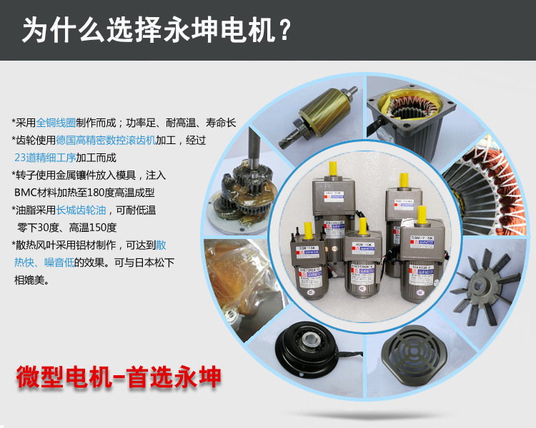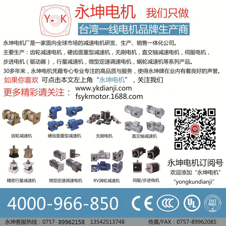 永坤電機是一家臺灣老品牌的齒輪減速電機產品生產企業,現生產與銷售各款各樣的齒輪減速電機產品,蝸輪蝸桿減速機產品,無刷電機,直流、交流伺服電機,配套相關驅動器,變頻器,調速器,控制器,歡迎新老客戶朋友們來電咨詢,更多詳情可與業務深入溝通、交流。電話15118744788蘇工,15118744777潘工,企業網站www.cpicwh.cn